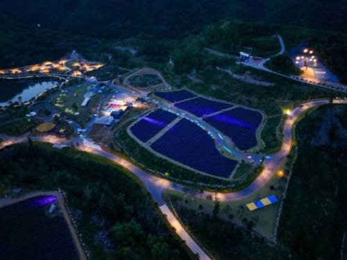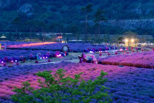 깊어가는 초여름, 보랏빛 향기로 물든 무릉별유천지가 낮에는 설렘을, 밤에는 환상을 선사한다.
