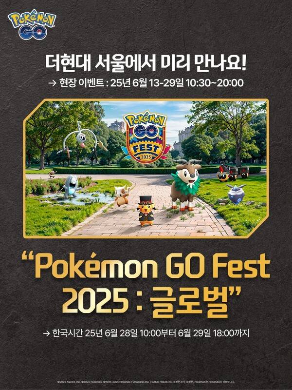 한편 포켓몬 고 페스트 2025: 글로벌은 전 세계 트레이너가 모두 참여할 수 있는 포켓몬 고 최대 연례 행사로 티켓 없이 무료로 즐길 수 있는 이벤트다.