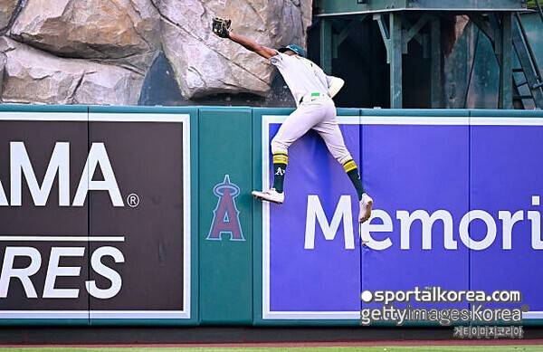 [SPORTALKOREA] 김지현 기자= 애슬레틱스의 중견수 덴젤 클라크가 시즌 최고의 '도둑질'을 선보였다.