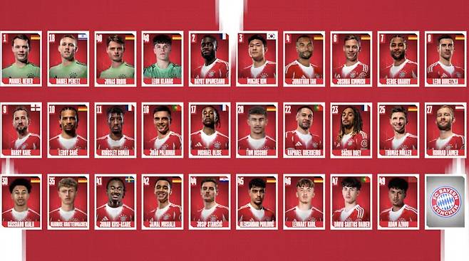 뮌헨은 총 29명의 선수를 공개했다. 직전 시즌(2024-2025) 시즌을 끝으로 팀을 떠나는 레전드 토마스 뮐러와 함께 신입생 요나탄 타, 톰 비쇼프 그리고 이적설이 끊이지 않고 있는 김민재가 포함됐다.