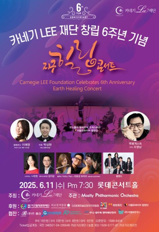 카네기LEE재단의 창립 6주년 기념 공연은 단순한 음악회를 넘어 예술을 통한 치유와 공감의 장을 만들어가고자 하는 의미 있는 시도다. 특히 재즈의 즉흥성과 자유로움을 통해 삶과 지구, 그리고 사람 간의 연결을 음악으로 풀어내는 이번 무대는 관객들에게 강렬한 감동을 안겨줄 것으로 예상된다.