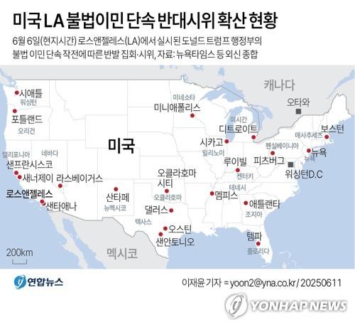 이런 가운데 불법이민자 단속·추방에 반대하는 집회·시위는 샌프란시스코를 비롯해 뉴욕, 시카고 등 다른 주요 도시로 확산하고 있다.