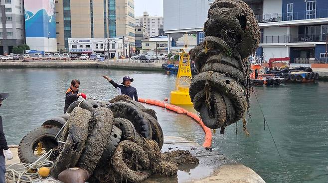 부산해경 관계자는 "오늘 수거한 폐타이어는 극히 일부"라며 "부산항 집단계류장 내 해저 바닥에는 여전히 많은 폐타이어가 남아 있다"고 말했습니다.