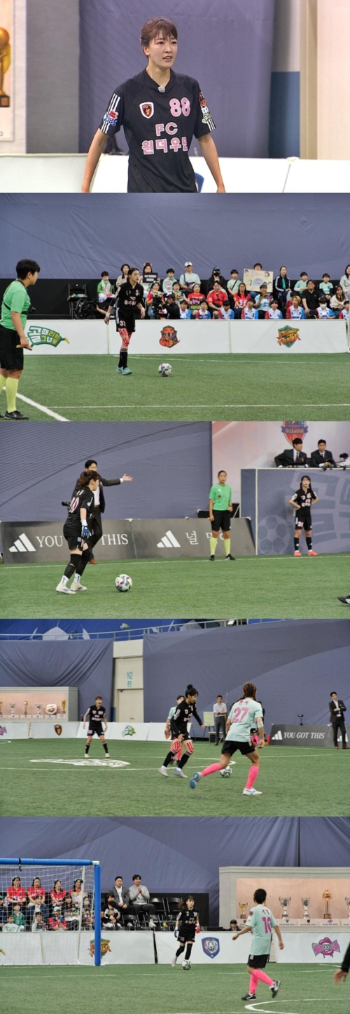 김소희는 ‘프로듀스 101’ 출신으로, ‘옆집소녀’, ‘네이처’ 등 다섯 번의 걸그룹 활동을 거친 이력을 지닌 ‘다중 데뷔’의 아이콘. 무대 위에서 단련된 악바리 근성으로, 이번엔 축구장 한복판에 도전장을 던졌다. 첫 등장부터 “‘원더우먼’이 우승할 겁니다. 제가 왔으니 각이죠”라는 당찬 발언으로 기대감을 높였다.