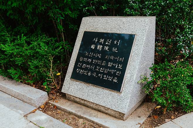 사역원 터 표석은 조선시대 당시 중국어, 일본어, 몽고어, 여진어 등 통역과 번역을 맡아보던 관청인 '사역원'의 자리를 기념한다. 조선말, 이 자리에는 '한성전보총국'이 들어섰다. 창학 터에서 도보 5분 거리에 표석이 자리한다.