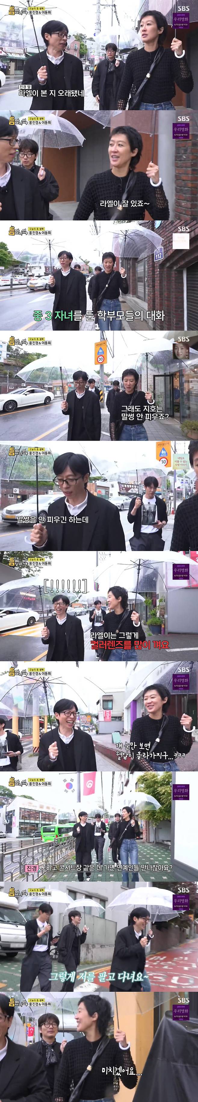 현재 중학교 3학년이라는 유재석 아들과 홍진경 딸. 이에 홍진경은 "지호는 잘 지내냐. 그래도 지호는 말썽 안 피우지 않냐"며 중3 자녀를 둔 학부모들의 대화가 이어졌다.