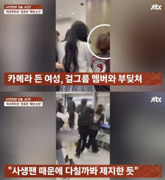 10일 방송된 JTBC '사건반장'에서는 최근 온라인상에서 논란이 됐던 걸그룹 하츠투하츠의 경호원이 팬을 폭행한 사건을 다뤘다.