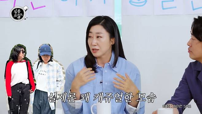 장도연은 "극 중에서 말고 실제로 봤을 때 (사람들이) 의외라고 하는 점이 있냐"고 물었다. 라미란은 "'왜 이렇게 얼굴이 작냐', '왜 이렇게 젊냐'. 어머님들이 보기엔 동년배인 줄 알았는데 실제로 보면 제가 애들처럼 입고 다니지 않나. 그러면 '왜 이렇게 아기 같냐'는 얘길 듣는다"라고 전했다. 또한 "왜 이렇게 날씬하냐고도 한다"라며 웃었다.