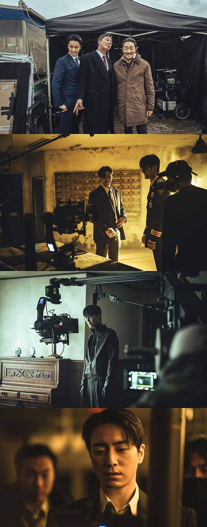 환하게 웃고 있는 조한철, 안길강, 허준호, 추영우, 차승원의 스틸은 광장 세계에서 각자의 목표와 욕망을 좇는 드라마 속 인물들과는 달리 유쾌했던 촬영 현장의 분위기를 생생히 전한다.