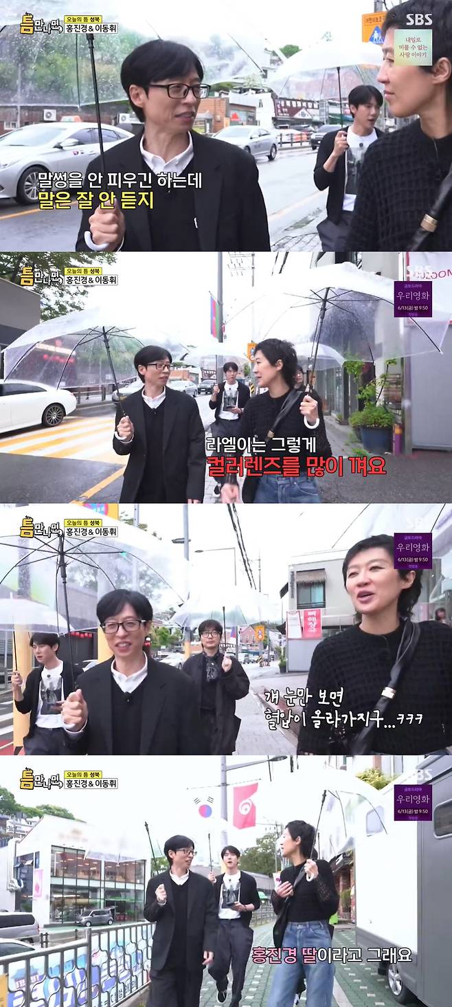 이어 네 사람은 성공의 기쁨을 안고 이동휘의 단골 맛집을 찾았다. 단골 맛집을 가는 길 '학부모' 유재석, 홍진경은 자녀들로 인한 고충을 털어놔 눈길을 끌었다. 유재석은 홍진경을 향해 "라엘이 잘 있어?"라며 근황을 물었고 "중3이 됐다"라는 홍진경의 대답에 "아들 지호랑 동갑이다"고 답했다. 이에 홍진경은 "그래도 지호는 말썽 안 피우지 않나?"라며 묻자 유재석은 "말썽은 안 피우는데 말은 안 듣는다"며 한숨을 쉬었다. 홍진경 또한 "라엘이는 요즘 그렇게 컬러렌즈를 많이 낀다. 걔 눈만 보면 혈압이 오른다. 종종 콘서트를 같이 가는데 가면 연예인들을 만나지 않나? 그러면 그렇게 '홍진경 딸이다'라며 나를 팔고 다니며 사진을 찍는데 미치겠다"고 고백해 유재석을 웃게 만들었다.