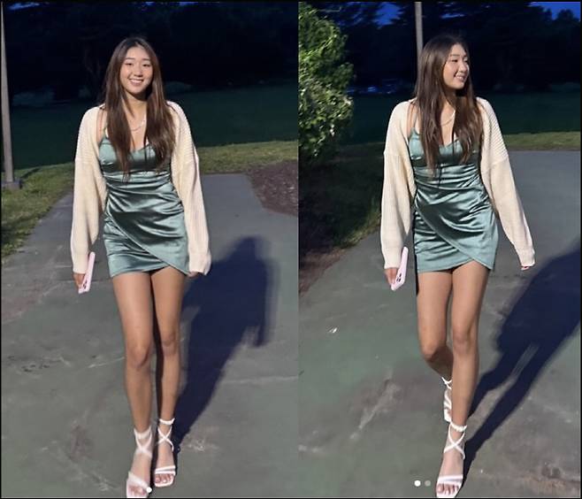 사진 속 큰 딸 라임이는 실크 원피스가 위화감이 없을 정도로 숙녀같은 성숙한 분위기를 뽐냈다.