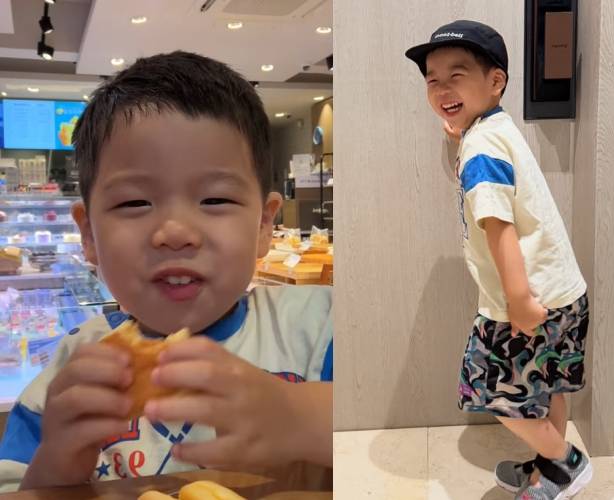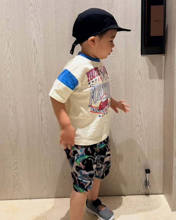 공개된 사진 속 준범이는 컬러풀한 패턴이 인상적인 반바지와 루즈한 그래픽 티셔츠, 그리고 스포티한 그레이 컬러 운동화를 매치해 어린이 특유의 밝고 발랄한 분위기를 잘 살렸다.