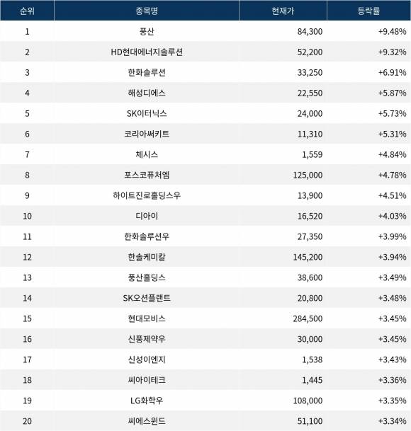 [서울데이터랩]‘풍산’ 9.48% 상승…실시간 상승률 1위