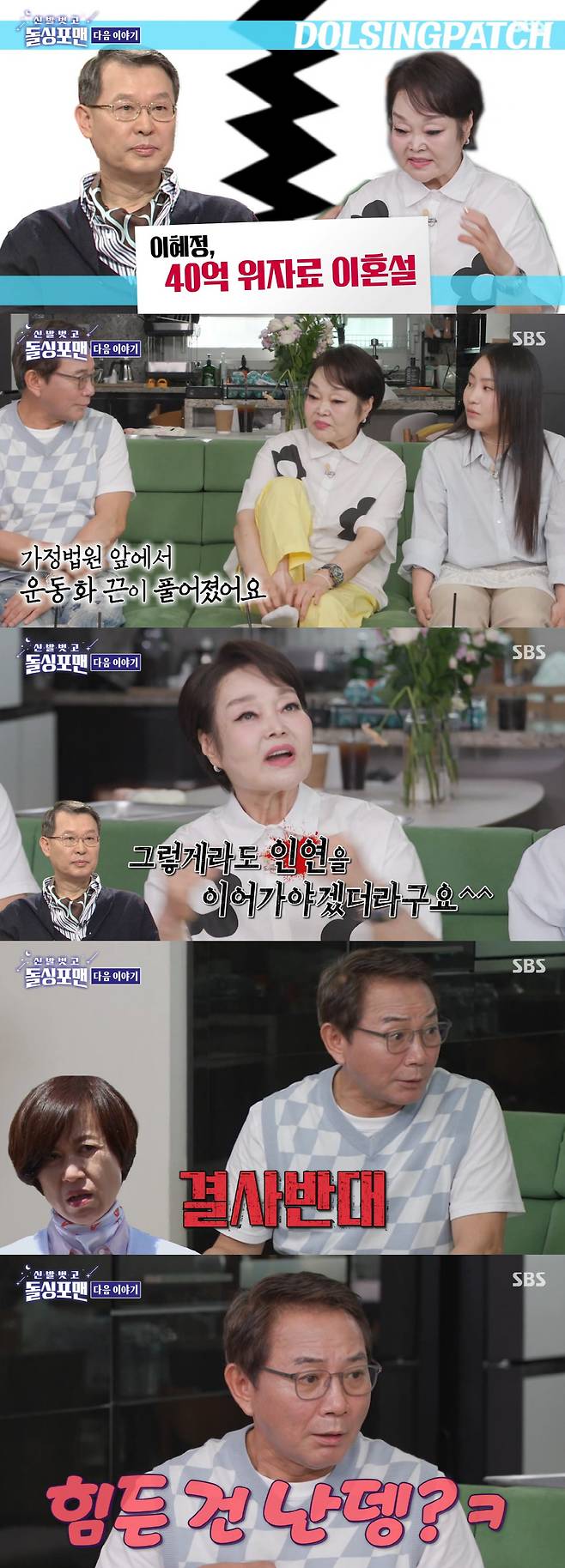 이에 이봉원은 "신발 끈 하나에 마음이 바뀐 거냐"고 물었고, 이혜정은 "그렇게라도 인연을 이어가야겠더라"고 인정해 웃음을 자아냈다.