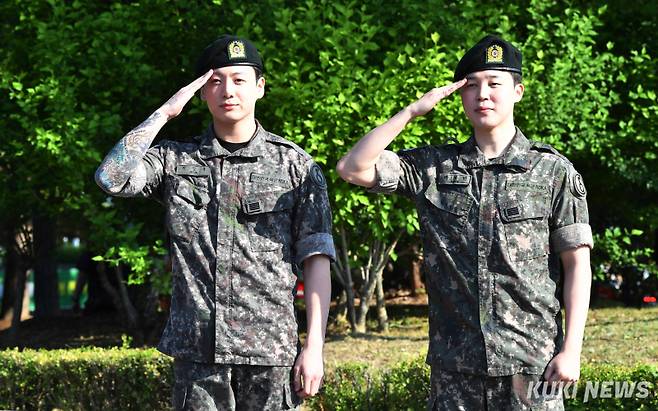 2023년 12월12일 동반 입대한 두 사람은 이날 오전 경기도 연천군에 있는 육군 제5보병사단 복무를 마치고 전역했다.