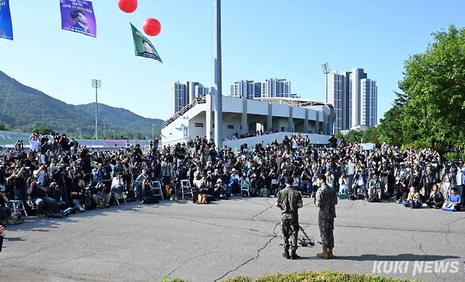 이들은 이날 오전 일찍 소속 부대에서 전역 신고를 한 뒤 위병소를 나온 뒤 바로 팬들이 기다리는 연천종합운동장으로 향했다. 연천종합운동장에는 전날 밤부터 이들을 만나기 위해 차에서 밤을 보낸 팬들도 많았고 이른 새벽부터 몰려온 팬들로 경기 북부의 소도시 연천은 모처럼 사람과 차량들로 북적였다.