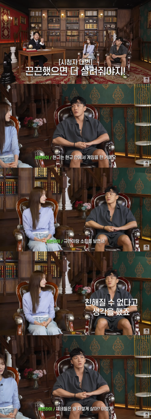 이를 듣던 세븐하이는 "제 시각에서 말씀드리면, 현규는 현규 안에서 게임을 한 거다. 14명의 플레이어 중에서 유일하게 두 명이 그런 행동을 하는 친구다. 규현이랑 소희, 두 친구는 굉장히 나이브하다. 저는 사실 게임이 다 끝나고 나와서 규현이랑 소희를 보면서 친해질 수 없다고 생각했다. '쟤네들은 왜 저러고 살아?' 이렇게 생각하는데, 어떻게 친해지겠냐"고 전하기도.