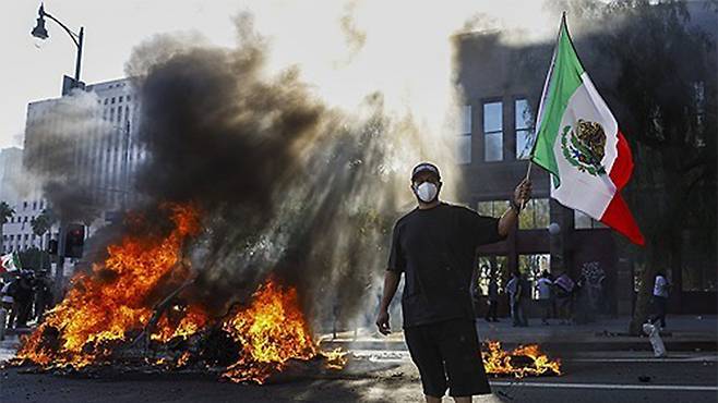 10일 CNN 방송과 뉴욕타임스(NYT) 등은 이번 시위에서 멕시코 국기가 추방 표적이 된 이민자들과 연대하고, 혈통의 '뿌리'에 대한 자부심을 나타낸다고 짚었습니다.