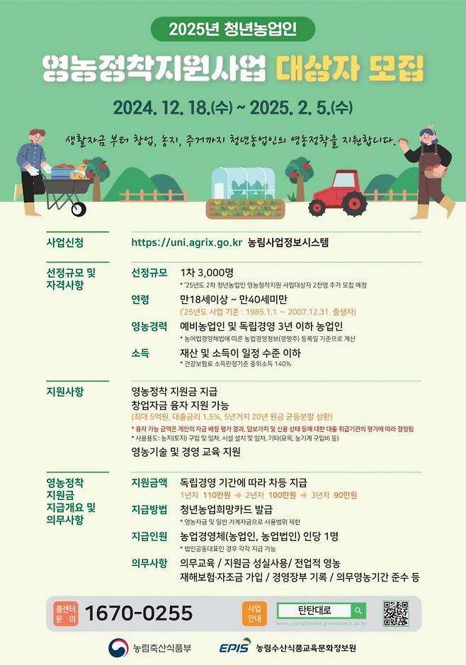 농식품부 관계자는 "이번 사업개선은 청년농업인의 영농 초기 안정적인 소득 확보가 필요한 점 등을 고려하여 2024년 11월 개선한 농외근로 제한요건을 대폭 완화했다"며 "청년농업인의 지원금 수령 및 의무 영농에 관계없이 영농활동을 유지한다면 농외근로를 허용하는 것"이라고 설명했다.