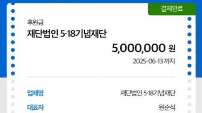 ▲ 유튜버 잡식공룡 5·18 기념재단 후원 인증 게시글