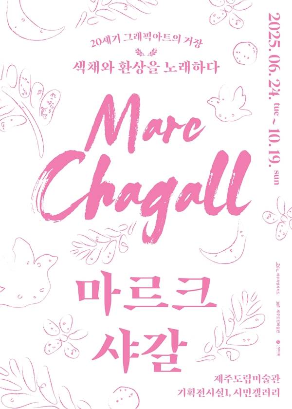 제주도립미술관(관장 이종후, 이하 도립미술관)은 6월 24일부터 10월 19일까지 마르크 샤갈의 원작 350여 점을 선보이는 전시 '마르크 샤갈: 20세기 그래픽 아트의 거장, 환상과 색채를 노래하다'를 개최한다. 장소는 도립미술관 기획전시실 1관과 시민갤러리다.
