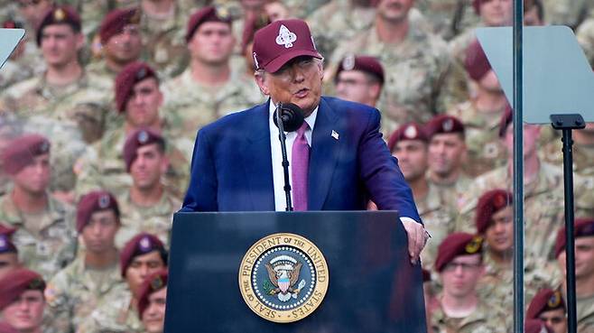 ▲ 미국 육군기지에서 연설 하고 있는 도널드 트럼프 대통령
