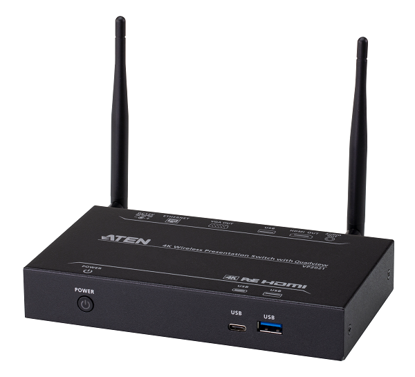 VHP2021은 무선 4K 프레젠테이션 스위치로, 노트북과 모바일 기기에서 HDMI 또는 VGA 디스플레이로 콘텐츠를 전송할 수 있다. AirPlay, Google Cast, Chrome 브라우저, ATEN 전용 앱과 호환되어 다양한 플랫폼에서 원활하게 활용 가능하다.