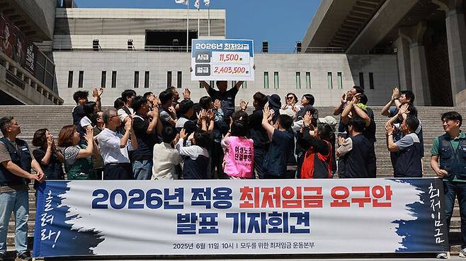 양대 노총인 한국노동조합총연맹과 전국민주노동조합총연맹 등 노동계와 시민사회단체는 오늘(11일) 서울 세종문화회관 앞에서 2026년 적용 최저임금 관련 기자회견을 열고 이같이 밝혔습니다.