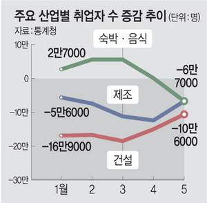 숙박·음식업마저…내수침체에 주요업종 ‘고용한파’