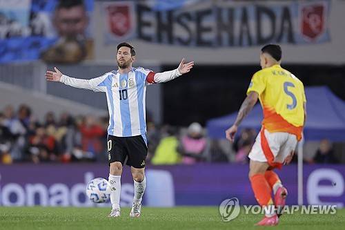epa12169305 Argentina's Lionel Messi reacts during the FIFA CONMEBOL 2026 World Cup qualifier match between Argentina and Colombia at Monumental Stadium in Buenos Aires, Argentina, 10 June 2025. EPA/Juan Ignacio Roncoroni