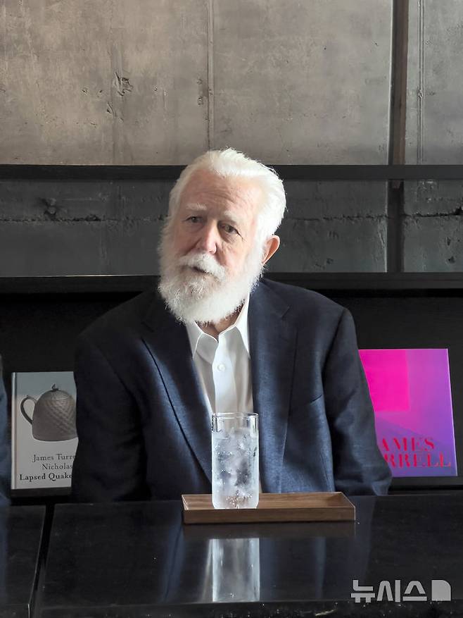 [서울=뉴시스] 박진희 기자 = 제임스 터렐(James Turrell) 작가가 11일 서울 용산구 페이스갤러리에서 기자간담회를 하고 있다. 2025.06.11. pak7130@newsis.com