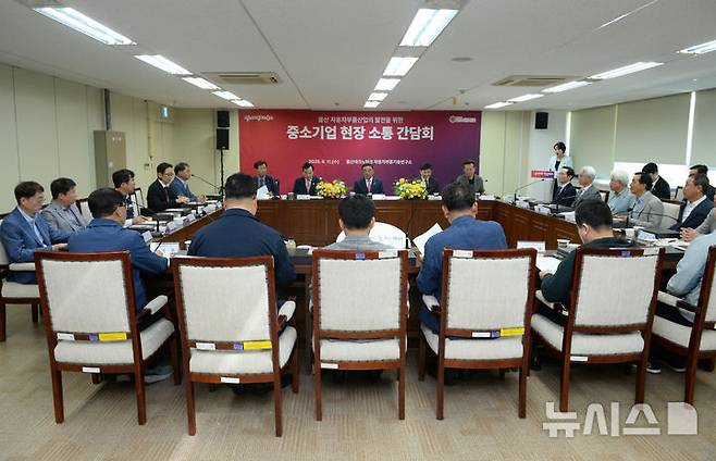 [울산=뉴시스] 배병수 기자 = 11일 울산 북구 울산테크노파크 자동차부품기술연구소 2층 회의실에서 울산 자동차부품산업의 발전을 위한 중소기업 현장 소통 간담회가 열리고 있다. 2025.06.11.bbs@newsis.com.