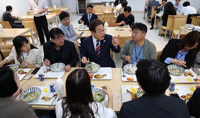 | ▲ 이재명 대통령이 11일 서울 용산 대통령실 기자식당에서 출입기자들과 점심식사를 하고 있다. 2025.6.11 [대통령통신사진기자단] |