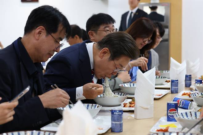 이재명 대통령이 11일 용산 대통령실 기자식당에서 기자들과 함께 점심식사를 했다.