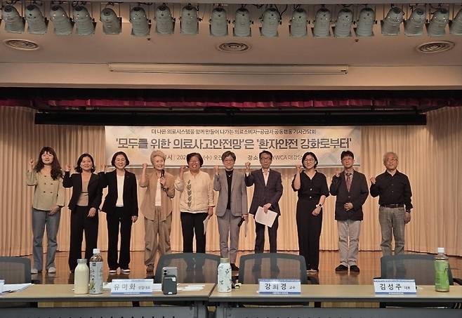 이 자리에는 공동행동 소속 강희경 전 서울의대·서울대병원 교수 비대위원장을 포함한 서울의대 교수들과 김성주 한국중증질환연합회 대표, 유미화 GCN녹색소비자연대 상임대표, 조은영 한국YWCA연합회 회장 등이 참석했습니다.