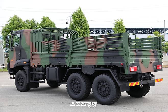 또 전자파 차폐 설계, 영하 32도 냉시동, 런플랫 타이어, 최대25명(5톤 기준)까지 탑승 가능한 수송 능력을 갖추고 있다. 특히 군용차임에도 어라운드 뷰, 에어 서스펜션 시트, 전후방 카메라, 내비게이션 등 최신 편의사양이 포함됐다.