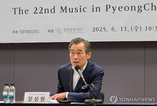 (서울=연합뉴스) 박원희 기자 = 평창대관령음악제 예술감독인 양성원 첼리스트가 11일 서울 중구 한국프레스센터에서 열린 기자간담회에서 발언하고 있다. 2025.06.11