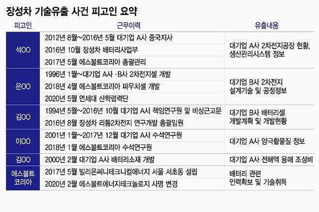 머니투데이가 확보한 공소장에 따르면 석씨는 한국계 중국 국적자로 2012년부터 중국 천징의 A사 사업장에서 제조혁신업무를 담당하다 2016년 10월 장성차 배터리사업부로 이직했다. 2017년 5월부터는 장성차 배터리계열사인 에스볼트의 한국지사 총괄관리를 맡았다.