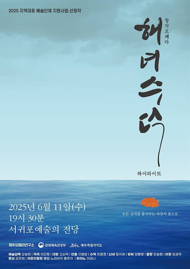 제주오페라연구소(소장 오능희)는 11일(수) 오후 7시 30분 서귀포예술의전당 대극장에서 창작오페라 '해녀수덕' 하이라이트 공연을 개최한다.