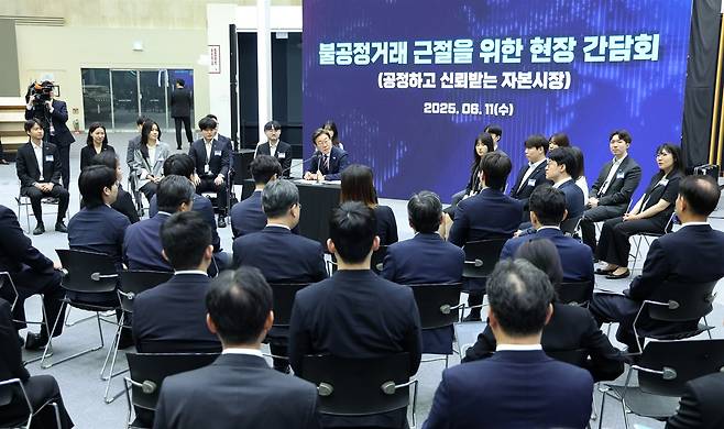 | ▲ 이재명 대통령이 11일 서울 영등포구 한국거래소에서 열린 주식시장 불공정거래 근절을 위한 현장 간담회에서 참석자 질문에 답하고 있다. |