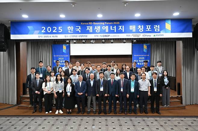 기업재생에너지재단이 국내 유일한 민간 재생에너지 조달 공개 플랫폼인 '2025 한국 재생에너지 매칭포럼을 10일 서울 은행회관 국제회의실에서 개최했다. 이번 포럼은 새 정부 출범 이후 처음으로 RE100 기업, 재생에너지 공급기업 등 재생에너지 시장 참여자들이 한자리에 모이는 행사로 RE100 달성을 위한 재생에너지 공급 전략을 공유했다.