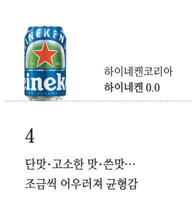 1위는 '하이네켄 0.0'이 차지했다. 알코올 함유 제품 고유의 몰트 향과 부드러운 보디감을 그대로 담아낸 제품이다. '듀얼 발효' 방식으로 알코올을 제거해 맛의 깊이를 구현해내고자 애썼다. 전용 조리법을 통해 본연의 균형감을 지키려 안간힘을 썼다.