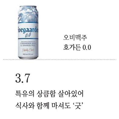 3위는 '호가든 0.0'의 몫이었다. 이 제품은 벨기에식 밀맥주로 특유의 부드럽고 상쾌한 풍미를 그대로 구현했다. 오렌지 껍질과 고수 씨앗의 향긋함이 살아 있는 맥주이기도 하다. 특유의 '저온 탈알코올' 공법으로 본연의 맛을 유지했다.
