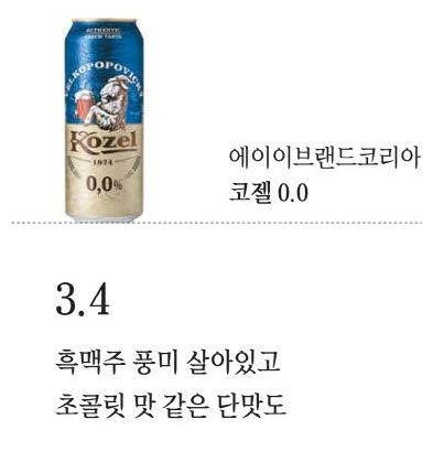 전체 최고점(4.5)이자 개인 최고점을 준 김금이 기자는 "흑맥주의 풍미가 살아 있고 실제 코젤 다크와 비슷한 맛이라 거슬리는 게 없었다"며 "초콜릿 맛 같은 단맛도 조화롭게 느껴지고 무게감이 있는 편"이라고 설명했다. 이어 "먹어본 제로 맥주 중 가장 맛있다"며 "간단한 간식과 곁들여 먹기 좋다"며 호평했다. 보리 맥아에 대한 호평은 이어졌다. 박 기자는 "보리 맥아 특유의 곡물 풍미가 진하고 끝맛이 씁쓸한 게 제일 마음에 든다"며 "논알코올 맥주지만 맛이 풍부하고 진해서 오리지널 맥주랑 크게 다르지 않다"고 말했다. 그는 좀 더 씁쓸하면서도 무거운 버전의 맥콜 같다는 느낌을 받았다고 부연했다.