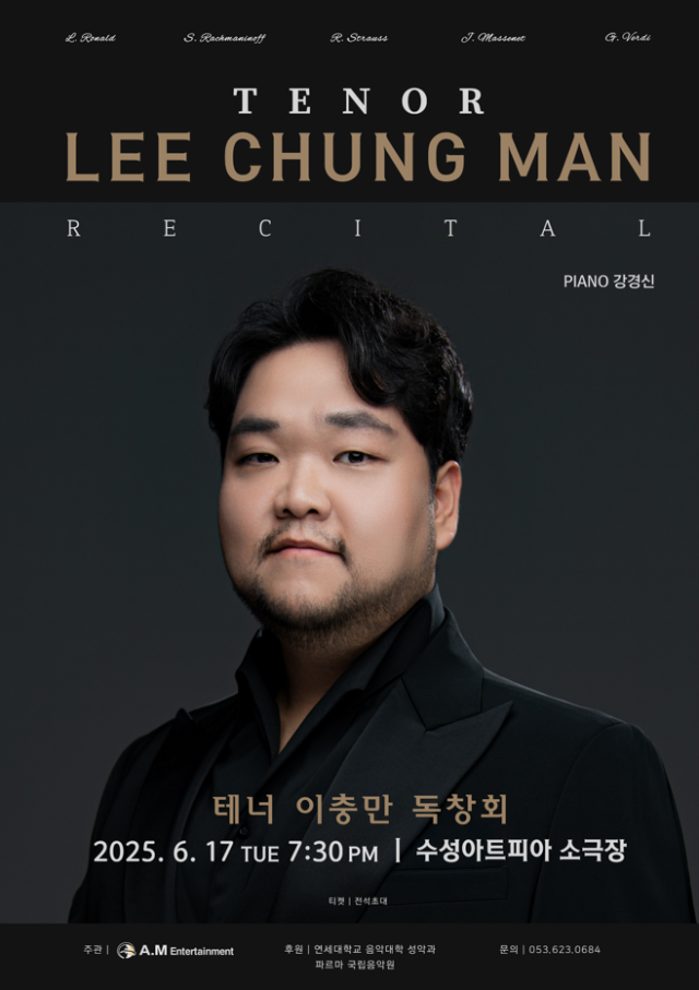 테너 이충만이 오는 17일(화) 오후 7시 30분 수성아트피아 소극장에서 독창회를 연다.