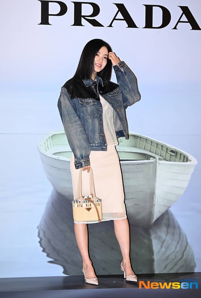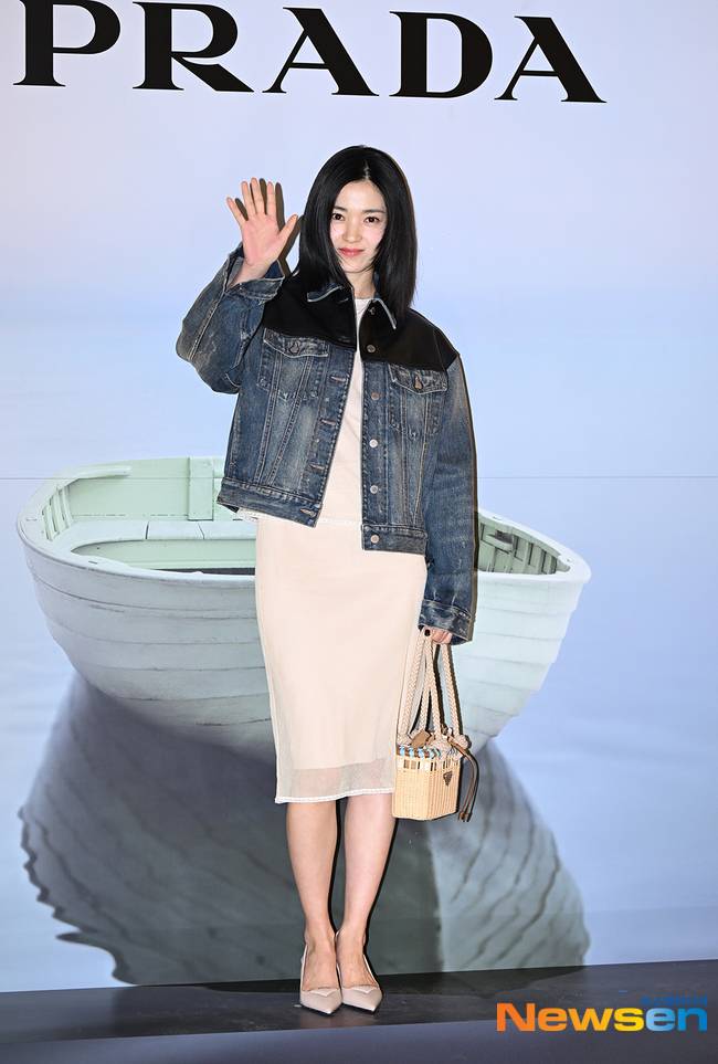 우아하고 고급스러운 느낌에 김태리는 펑키한 느낌의 청재킷을 더해 반전 매력을 선보였다. 무심하게 걸친 청재킷이 지나치게 여성스러운 느낌일 수 있는 원피스룩에 포인트가 됐다.