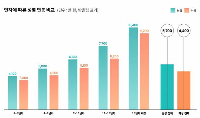 예를 들어 1~3년차 구간에서는 약 500만원의 차이가 있었으나 11~15년차 구간에서는 그 격차가 약 1500만원까지 벌어졌다. 경력이 누적될수록 여성의 승진 및 보상에서 구조적 불균형이 발생하고 있다는 설명이다.