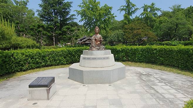 그녀를 본 순간 발걸음이 굳어 발을 뗄 수가 없었다. 한참, 예를 갖춰 조각상을 쳐다본다. 조선이 낳은 천재 여류 시인에 대한 최소한 예의일 것 같다. 그녀를 바라보면서 조선인, 여자로 태어나서 억울했다는 이야기라도 한마디 듣고 싶다.
