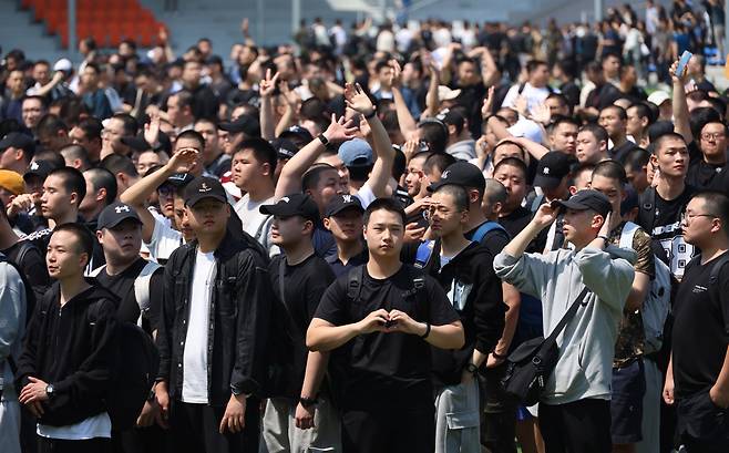 | ▲ 5월 26일 충남 논산시 육군훈련소로 입영하는 장병들이 병무청 '현역 입영문화제(청춘 예찬 콘서트)'를 관람 후 입대 준비를 하며 부모님께 인사하고 있다. |