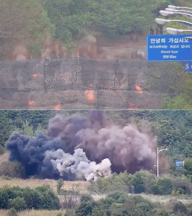 | ▲ 2024년 10월 15일 북한이 경의선·동해선 남북 연결도로 일부 구간을 폭파했다고 합동참모본부가 밝혔다. |
